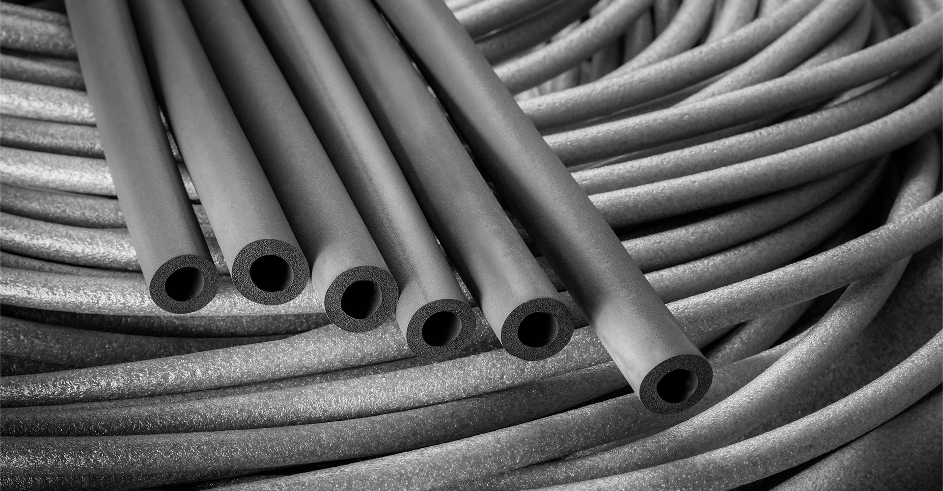 I tubi in gomma espansa sono realizzati in elastomeri espansi come EPDM ed NBR, con struttura a celle chiuse o aperte.